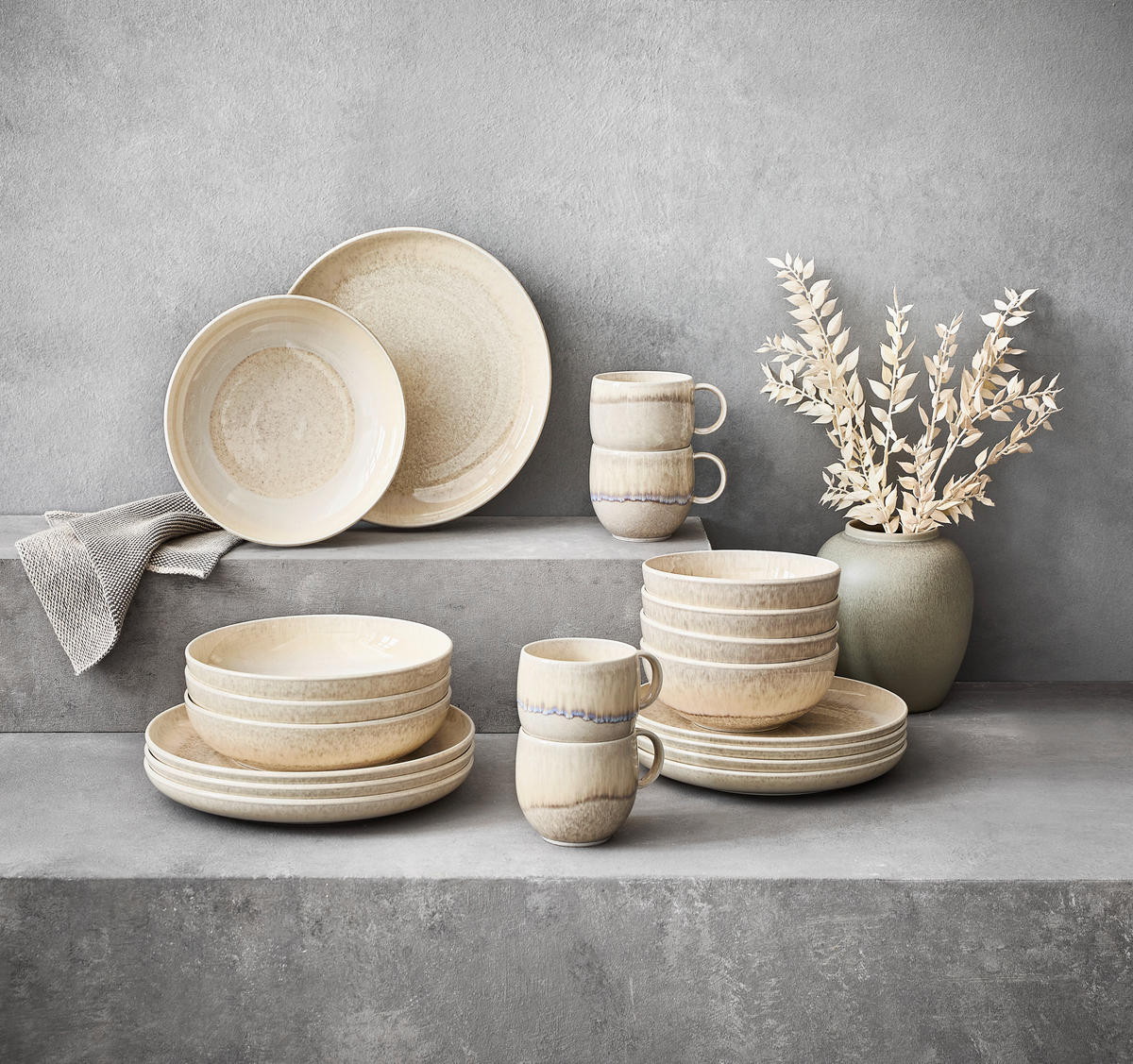 Fiecare piesă se remarcă printr-un design texturat subtil și o nuanță caldă de bej nisipiu, care se integrează cu ușurință în orice stil de bucătărie, de la rustic la modern.