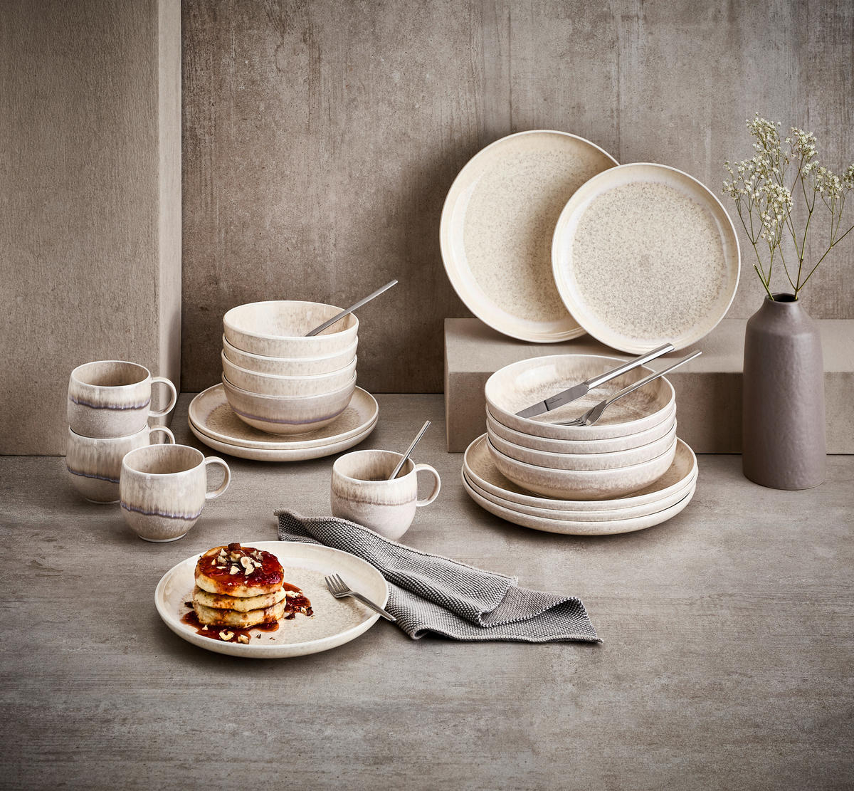 Inspirat din tonurile naturale ale nisipului, acest set de mic dejun din colecția Perlemor Sand aduce un plus de rafinament și liniște fiecărei dimineți. Realizat din ceramică Fine China, cu finisaj lucios și glazură aplicată in-glaze pentru durabilitate și estetică deosebită, acest set este perfect pentru cei care apreciază eleganța discretă.