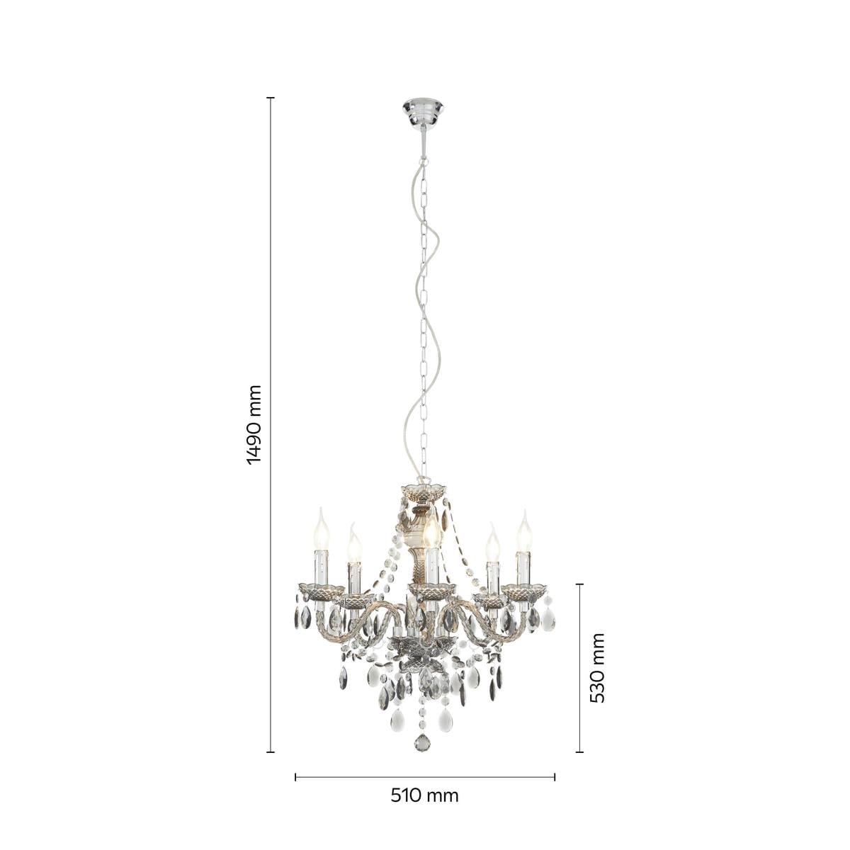 Acest candelabru arcuit, cu 5 surse de lumină și finisaj cromat lucios, este o piesă de iluminat de efect, perfectă pentru living, dining, dormitor sau bucătărie. Cu o structură metalică solidă și detalii din acril transparent, îmbină funcționalitatea cu un design contemporan și elegant.