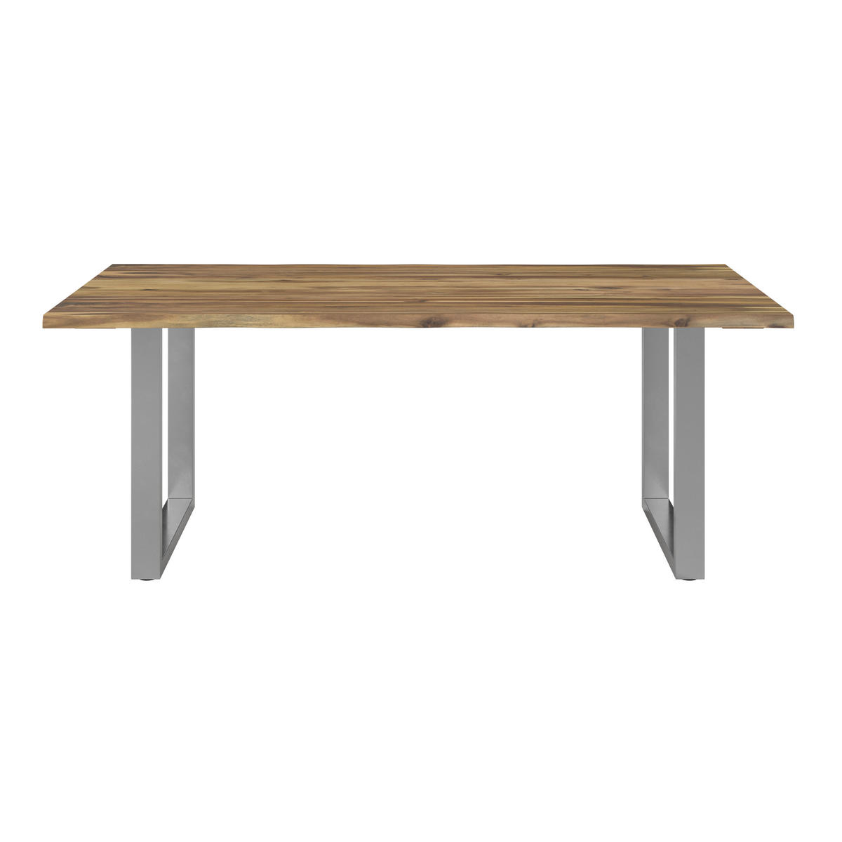 Această masă rectangulară este o alegere excelentă , combinând frumusețea naturală a lemnului masiv de acacia cu rezistența oțelului inoxidabil.