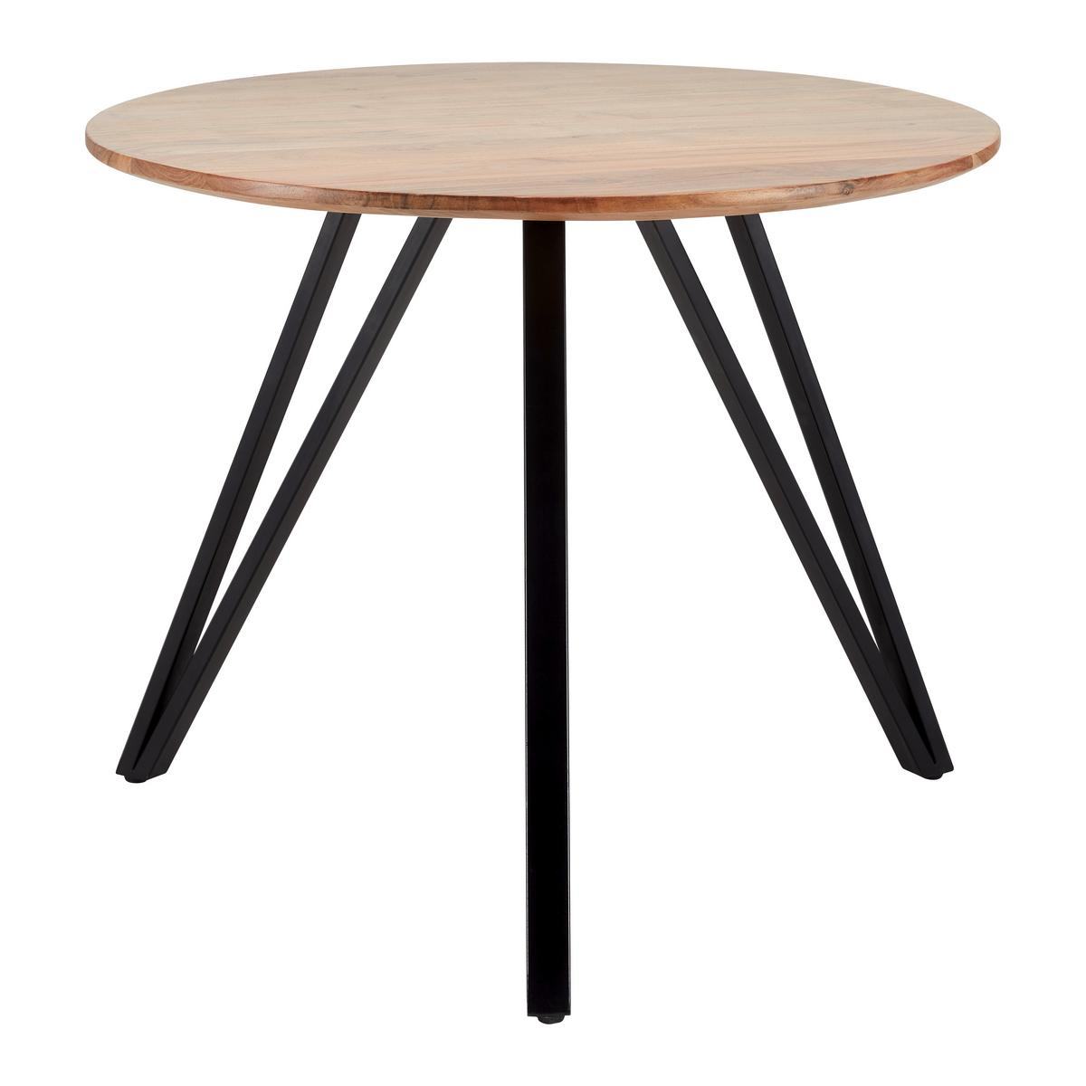 Această masă rotundă este alegerea ideală pentru interioare moderne sau rustice, datorită îmbinării dintre lemnul masiv de acacia și cadrul metalic cu finisaj negru. O piesă robustă și estetică, perfectă pentru spații de dining sau colțuri de relaxare.