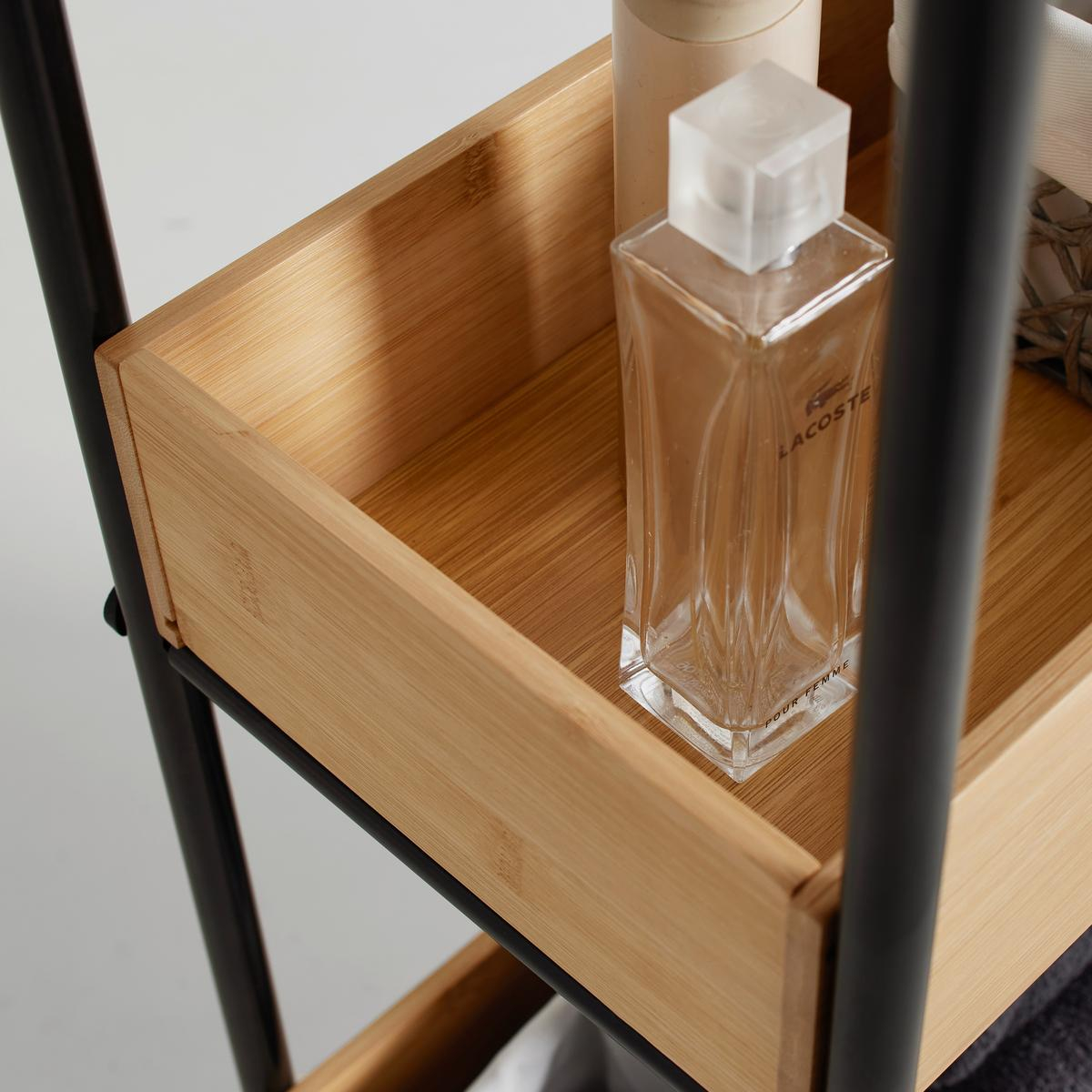 Etajeră mobilă din bambus și metal – design natural, funcționalitate maximă