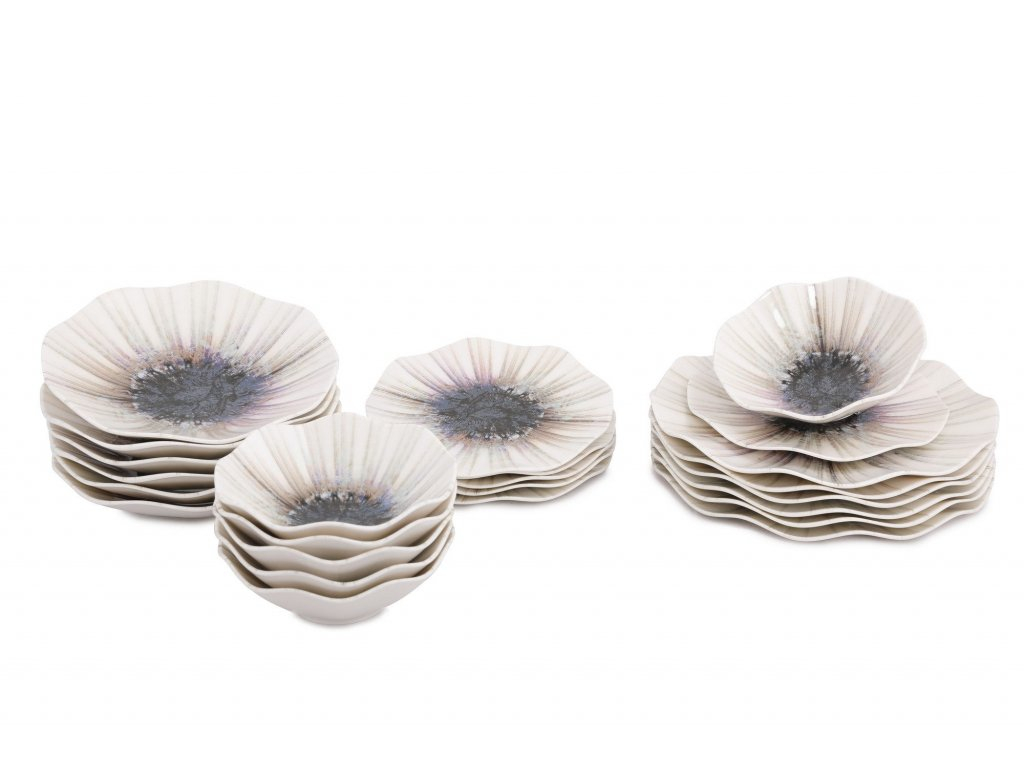 Fabricat din ceramică de calitate superioară (porțelan), setul combină eleganța cu funcționalitatea. Fiecare piesă este concepută cu dimensiuni ideale pentru servirea meselor complete: de la supe și feluri principale, până la deserturi delicioase.