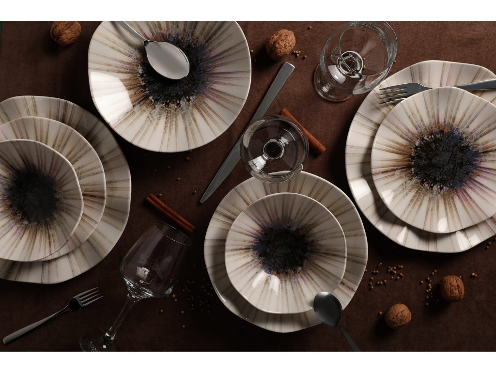 Set de veselă din porțelan – 24 piese pentru 6 persoane | Design multicolor și elegant